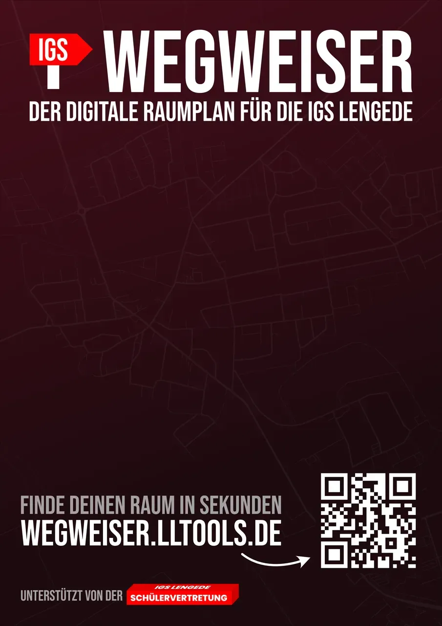 Die IGS Lengede besteht räumlich aus zwei großen Gebäudekomplexen mit jeweils zwei Stockwerken. Bei einer großen Schule mit über 100 Räumen kommen so weite Wege zustande. Die Raumsuche ist zu Schuljahresbeginn, im Vertretungsfall oder auch für die zahlreichen Gäste immer wieder zeitaufreibend und nervend. Der Wegweiser hilft hier einfach, intuitiv und enorm praktisch. Er passt in jede Hosentasche und ist allzeit nutzbar.